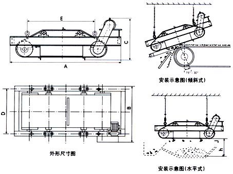 RCDC系列風冷自卸式電磁除鐵器,是在RCDA系列除鐵器的基礎上增加了驅(qū)動電機、滾筒、帶刮板的卸鐵膠帶等組成的卸鐵機構(gòu)。在工作過程中卸鐵機構(gòu)自動將卸鐵皮帶吸附的鐵磁性物質(zhì)卸到集鐵箱內(nèi),無需停電人工清理,實現(xiàn)了除鐵自動化。
